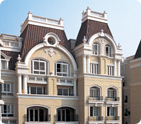 引進外部智力,招賢納才,高薪聘請國內(nèi)資深歐 式建筑設計專家擔任企業(yè)技術(shù)顧問,并聘用國內(nèi) 優(yōu)秀設計師組建設計團體。在建筑設計中,設計 師把握仿真石能任意造型的特點,將建筑的功能 化、藝術(shù)化、人格化和個性化得以充分展現(xiàn),體 現(xiàn)了現(xiàn)代建筑高貴、典雅的風格,讓觀者領(lǐng)略了 不同凡響的品味和悠遠的歐洲文化。